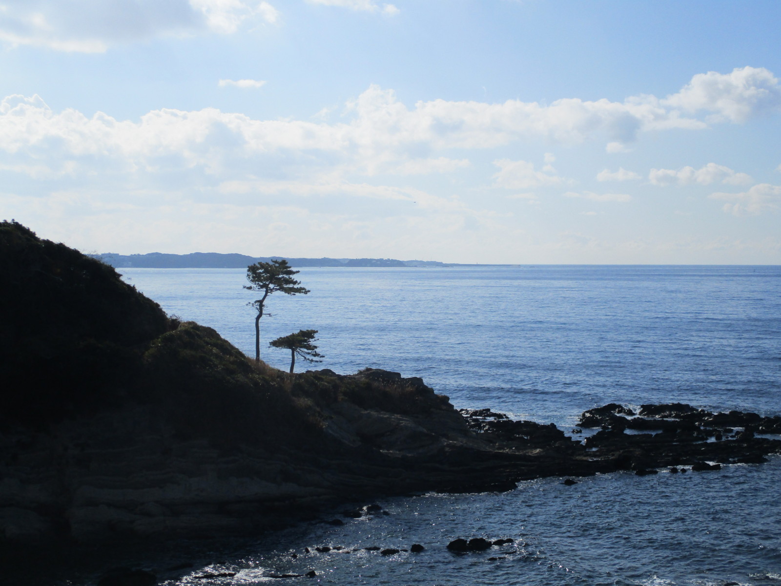 城ヶ島へ向かう。 城ヶ島公園の駐車場に車を止めて、安房崎前歩く。 途中展望台(城ヶ島大2展望台)があったので登ってみる。西側の景色は荒崎公園からのとほとんど変わらない。 東側を見ると劒崎と東京湾の入口の向こうに房総半島が見える。 安房崎について、また展望台(第1展望台)にのぼると、目の前に安房崎灯台がある。 三浦大根をモチーフとしたデザインののだそうです。 この展望台からも展望台からは房総半島の南端や伊豆大島が見える。 房総半島の南端 伊豆大島 |