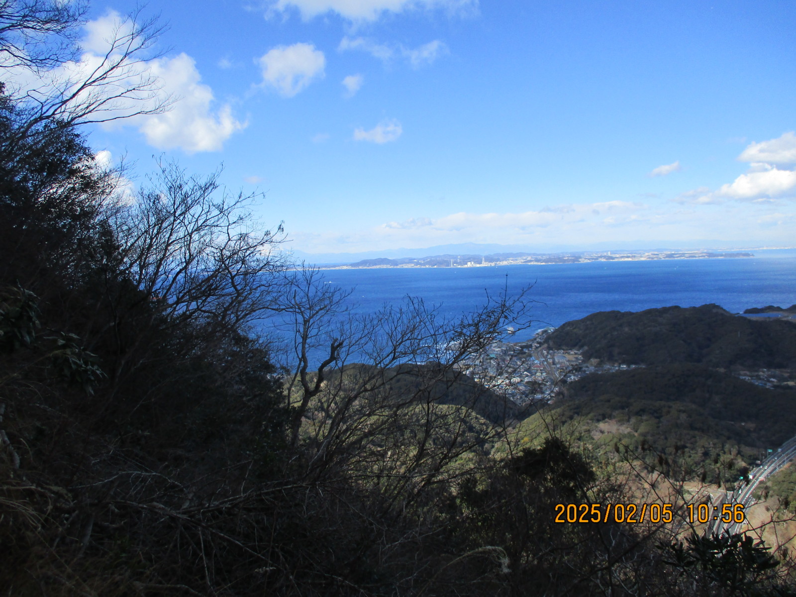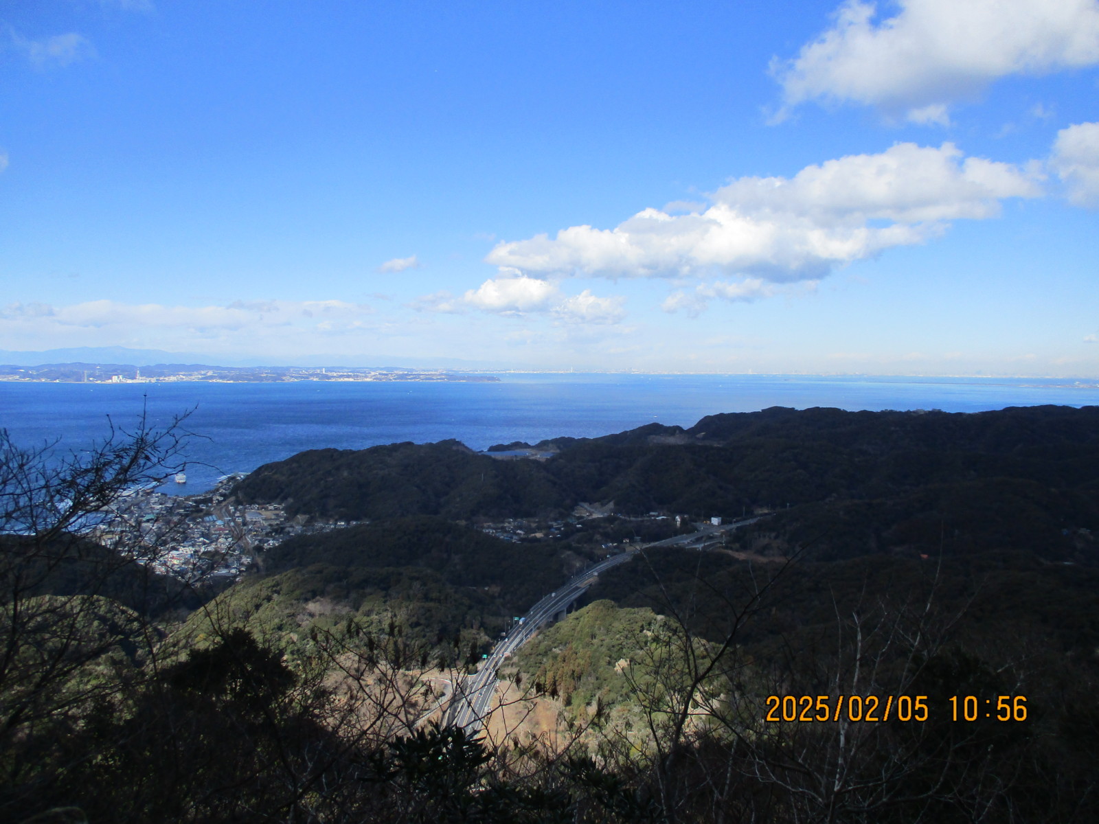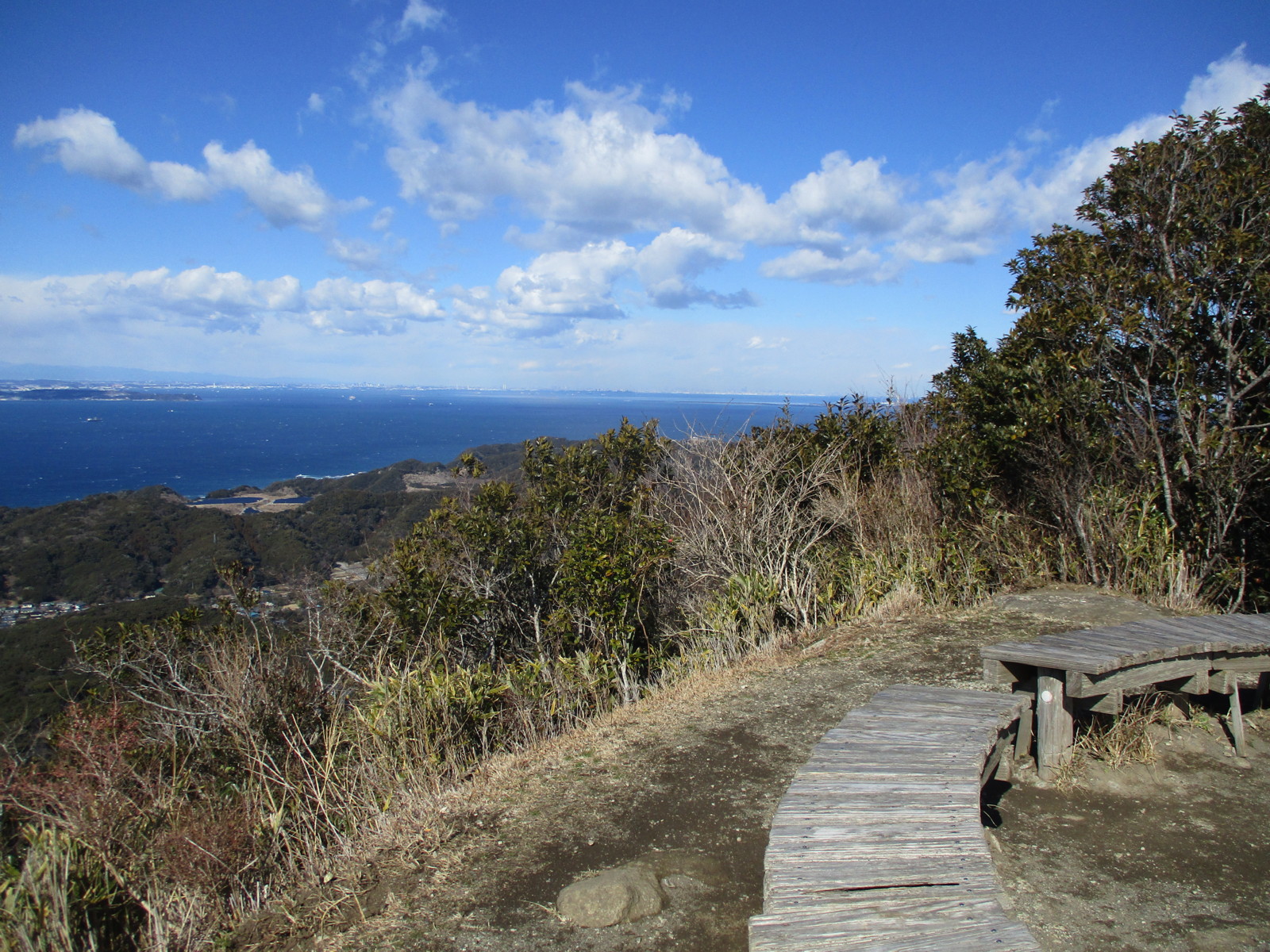 南の方向に保田海岸から遠くに洲崎まで見える 南西方向。遠くに伊豆大島や伊豆半島が見える。 西方向。白い建物の向こう、海の向こうに城ヶ島が見える。 西北には久里浜の横須賀火力発電所が見える。 北方向。東京湾の奥に東京のビル群が小さく見える。