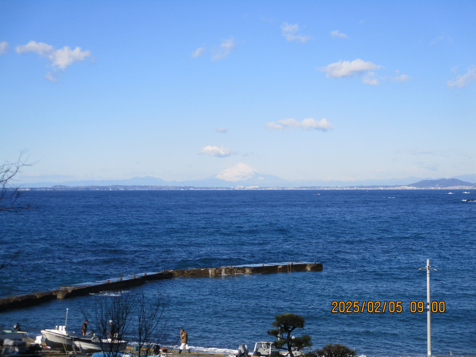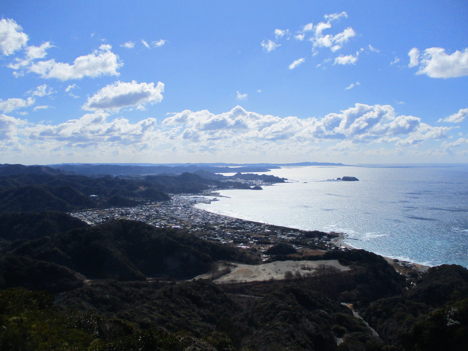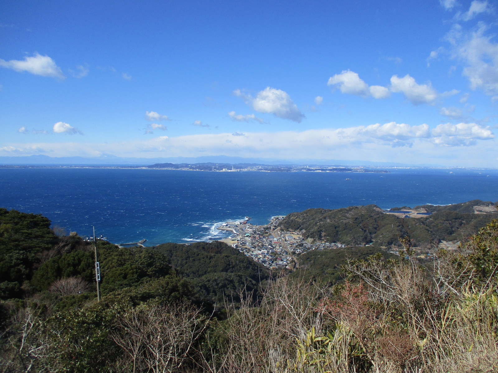 南の方向に保田海岸から遠くに洲崎まで見える 南西方向。遠くに伊豆大島や伊豆半島が見える。 西方向。白い建物の向こう、海の向こうに城ヶ島が見える。 西北には久里浜の横須賀火力発電所が見える。 北方向。東京湾の奥に東京のビル群が小さく見える。