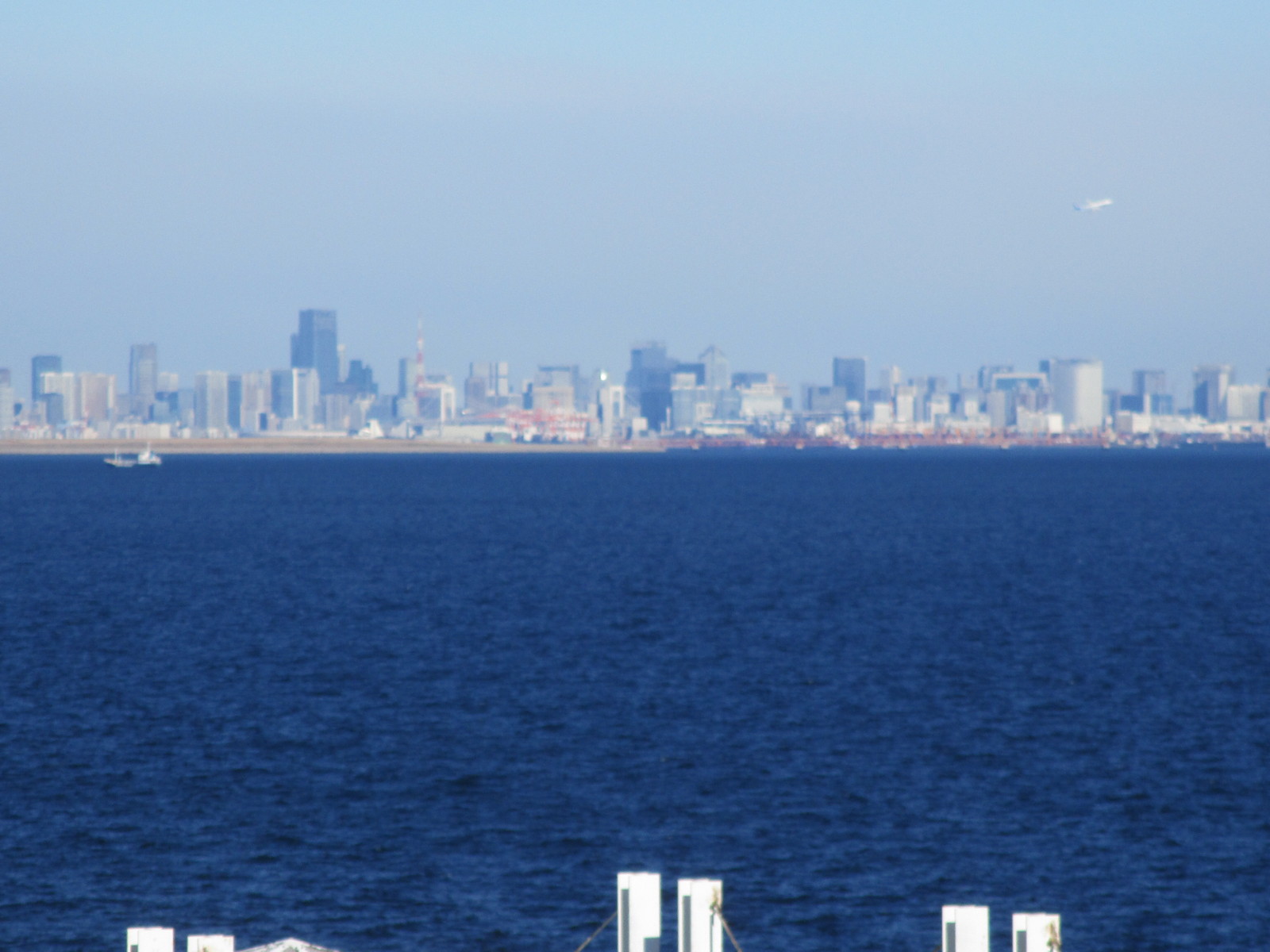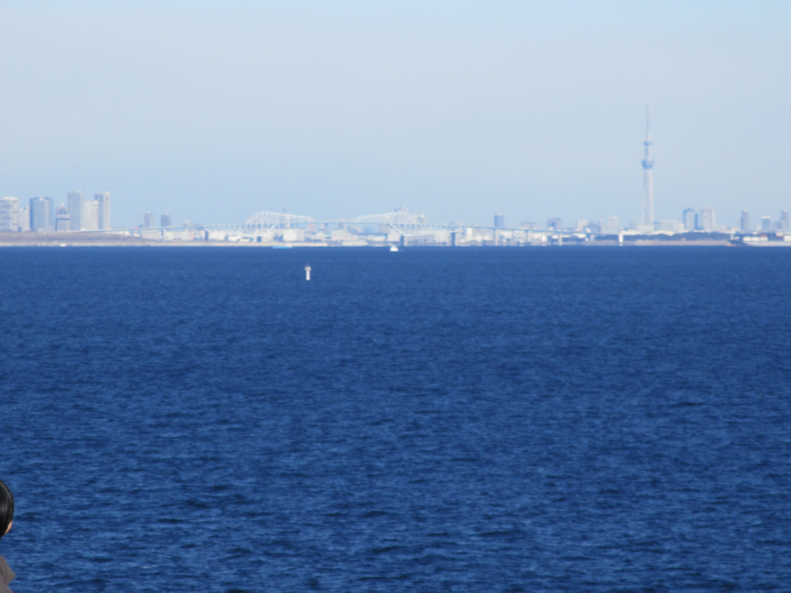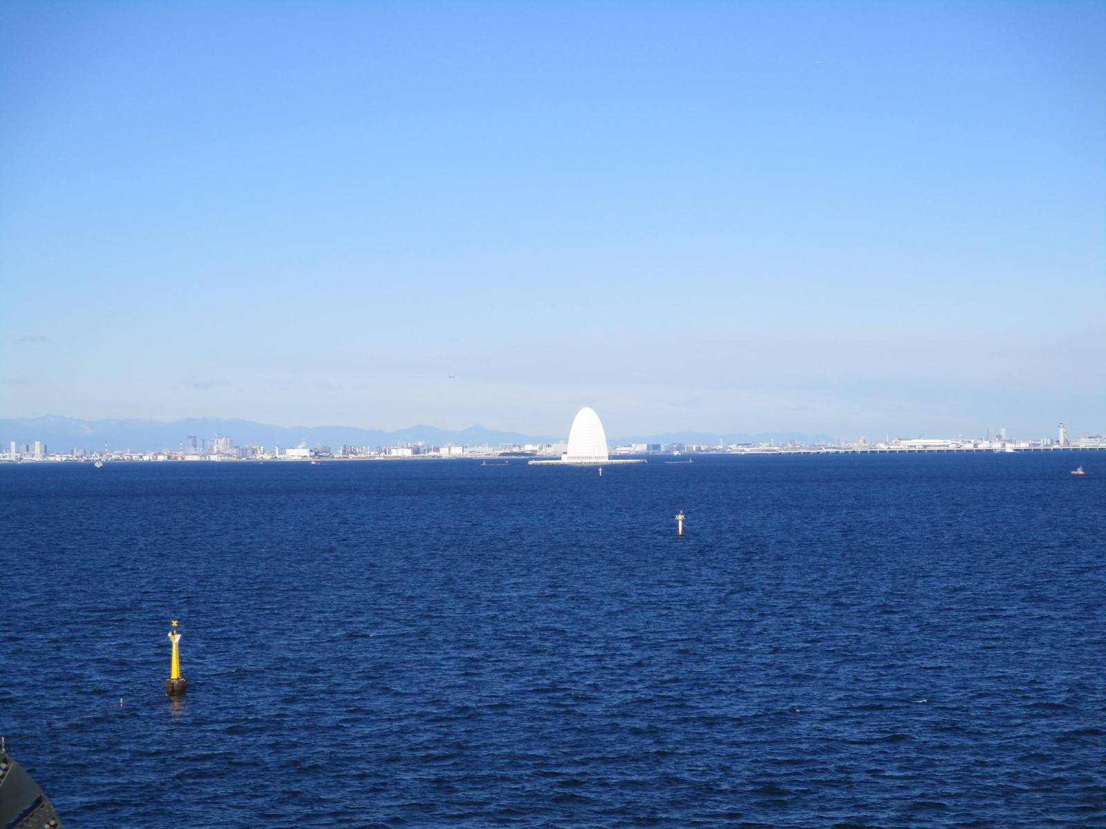 東京湾アクアラインは海底トンネルで川崎につながっている。中間の排気設備である風の塔が見える。