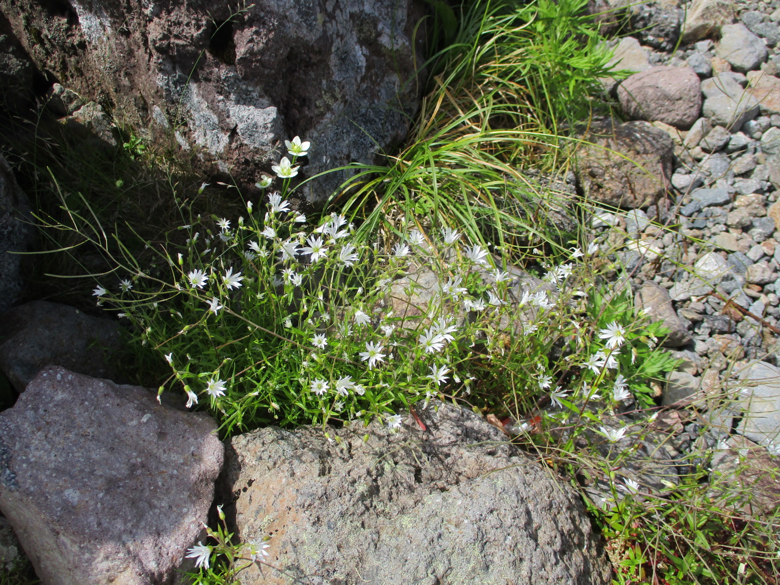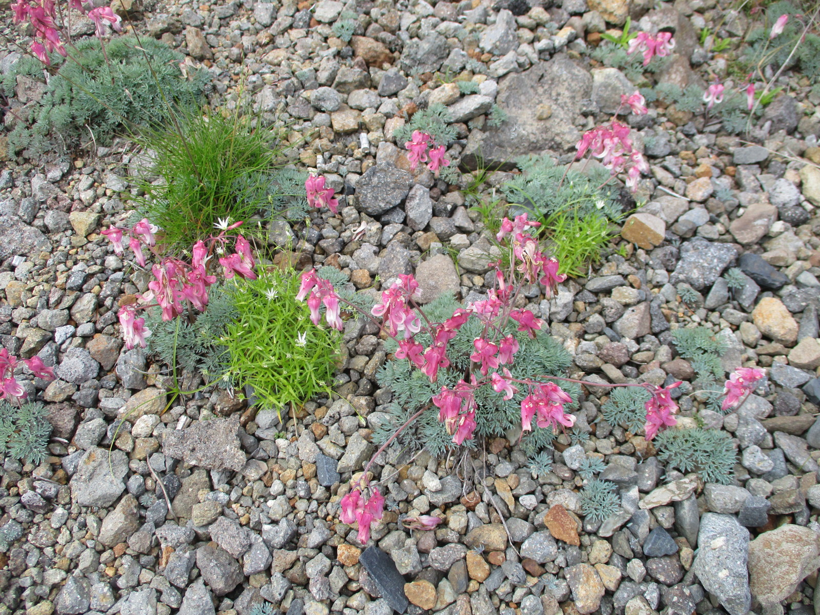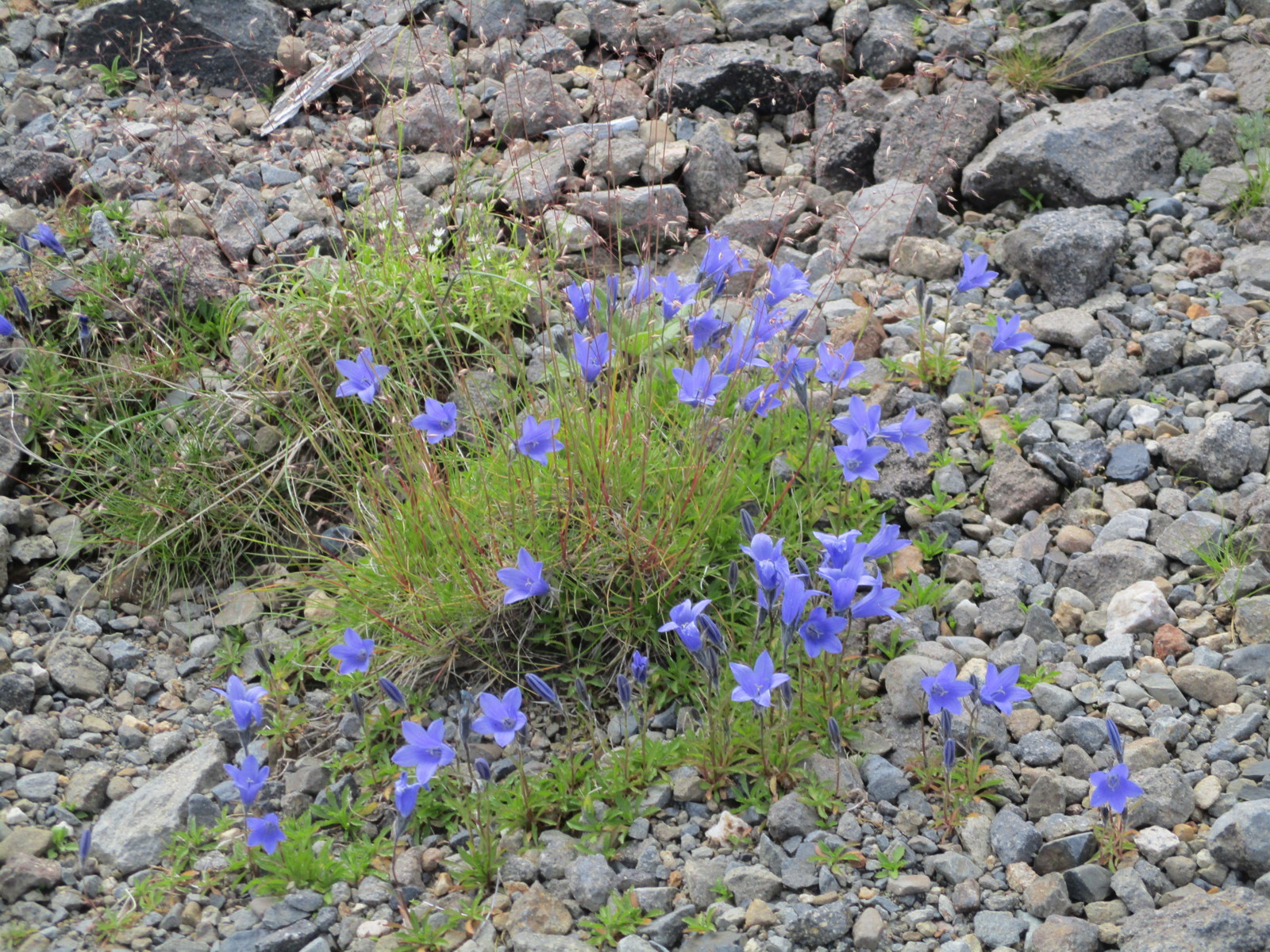 9:39 | 身支度を整えて出発。 鶴ヶ池。水はいつもより少ないようだ。 池の周辺にはかわいい高山植物が咲いていた。 ウメバチソウとイワツメクサ イワギキョウ コマクサ |