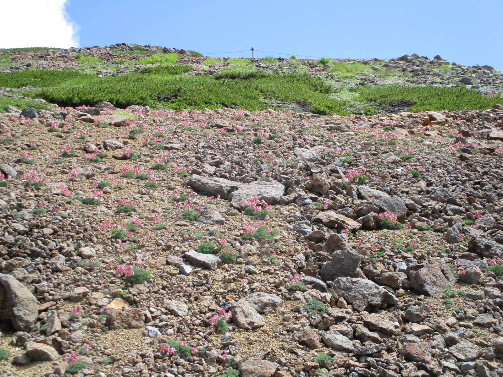 10:03 | 左側の富士見岳の斜面にはコマクサの大群落があった。 |