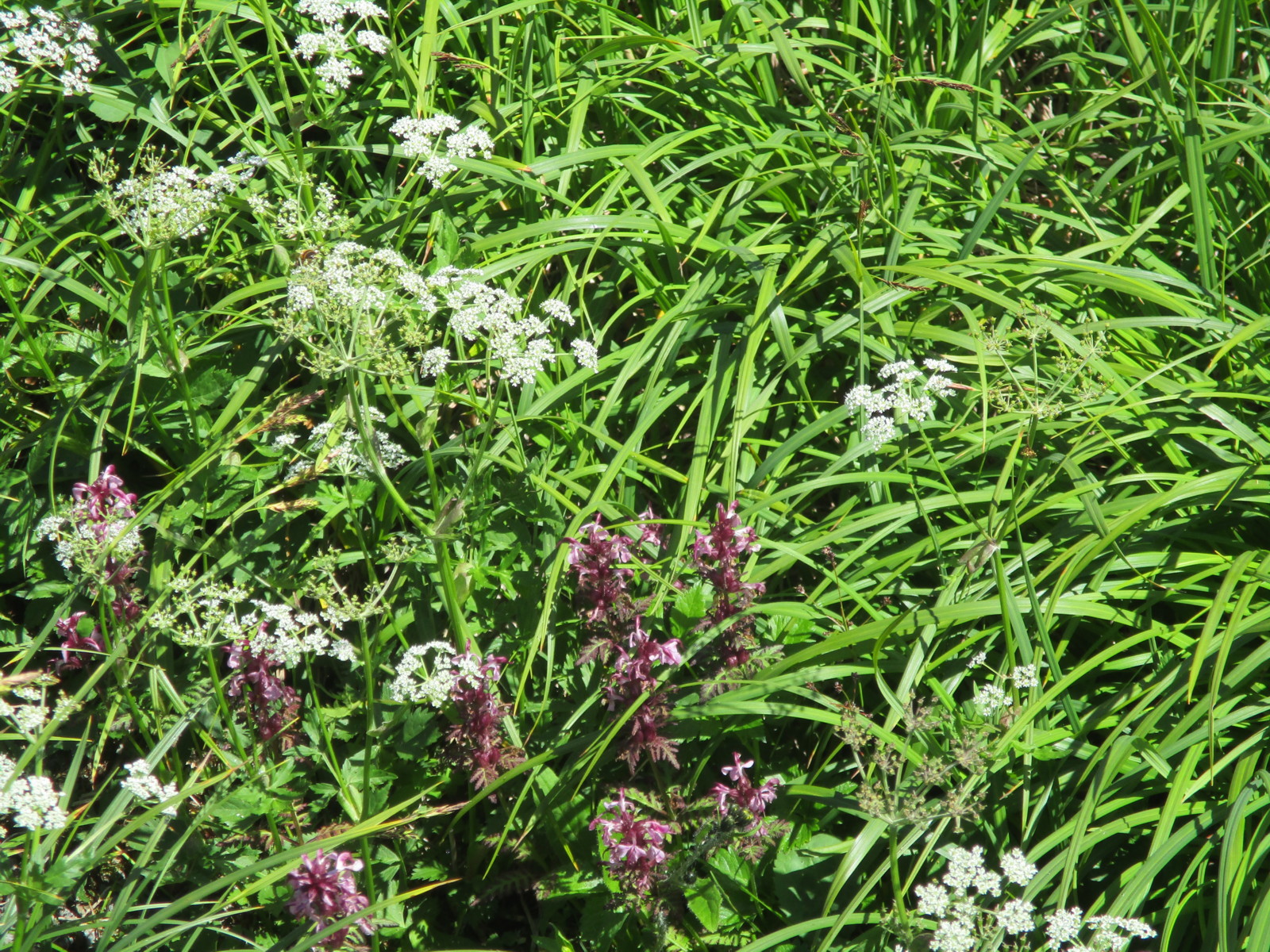 お花畑による。 時期のせいか花は思ったより少なかった。 ウサギギク ヨツバシオガマとハクサンボウフウ? |