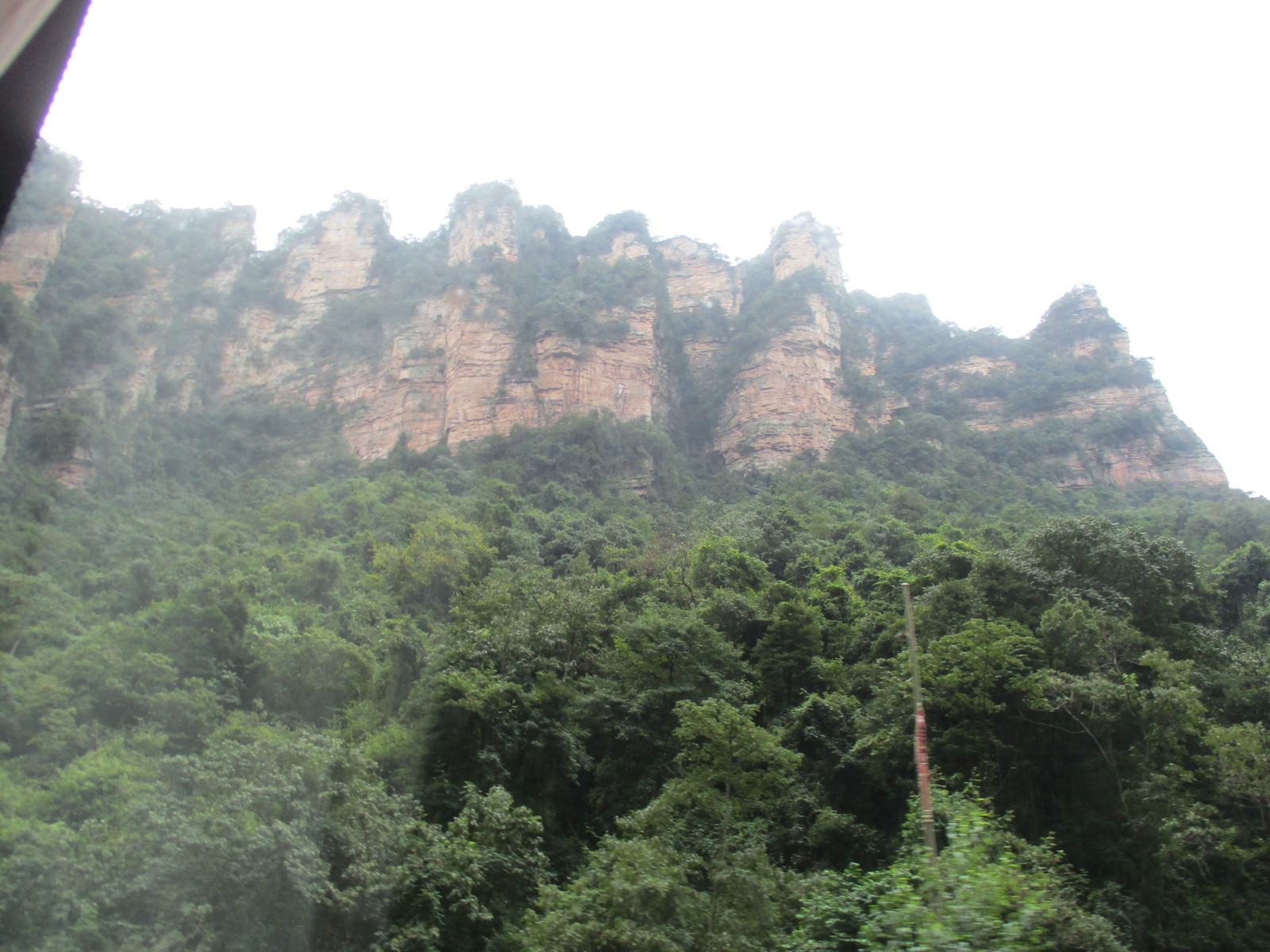 | 早起きして食堂へ。楽に席が取れた。MKさんと食事。 9時出発。バスで張家界の町へ向かう。 途中、バスの窓から凄い崖がいくつも見えた。 張家界の中心部は大きなビルやマンションが立ち並んでいる。 |